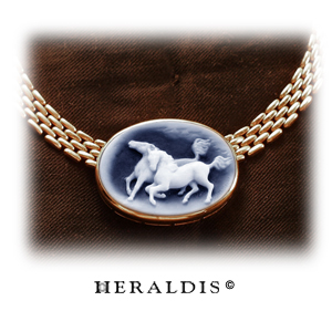 2 spielende Pferde in einen Lagenstein als Gemme graviert. Eine schöne breite Halskette 18 Karat Gelbgold eingefasst. Ca 6500€
