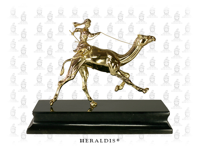 Ein Geschenk des Bauträgers an den Bauherrn zum Anlass der Fertigstellung und Eröffnung eines staatl. Objekt in den vereinigten Emiraten (Abu Dhabi). Eine schöne vollplastische Arbeit. Das Kamel ist in dieser Darstellung nur mit einem Fuß am Boden. Das unterstreicht neben der feinen Ausarbeitung die Perfektion.