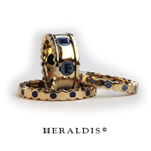 Gelbgold mit glatt gefassten Safiren